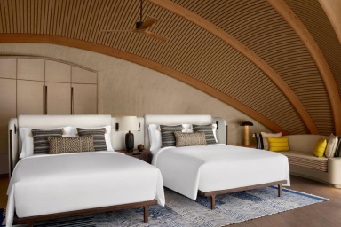 , что добавляло уюта и уединенности. Обратили внимание, что все тут ходят босиком, даже на завтрак обед и ужин. То есть обстановка в отеле расслабленная, нет никакого шума, движухи, все, чтобы побыть наедине с собой или с семьей. Жена ходила на йогу, вставала в 6 утра, ей там очень понравилось, прямо на рассвете занятия. Сервис - просто песня. Все на высшем уровне, то есть ты не успеешь нажать кнопку "Убрать номер", а персонал уже у ваших дверей. Официантов ни о чем не надо просить, они сами все всегда предложат, а если нет каких-то приборов или воды, то замечают это за километр и сразу сами приносят. Еда: нет ничего приевшегося, каждый день новые угощения, причем разные кухни. И важно: была постоянная возможность есть свежие морепродукты каждый день на гриле.